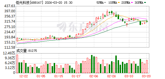 炬光科技3月20日大宗交易平台出现一笔成交,成交量1.26万股,成交金额393.25万元,大宗交易成交价为312.10元。该笔交易的买方营业部为国投证券股份有限公司广州猎德大道证券营业部,卖方营业部为中国国际金融股份有限公司北京建国门外大街证券营业部。