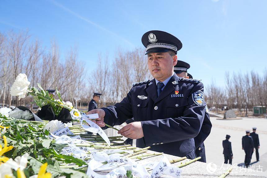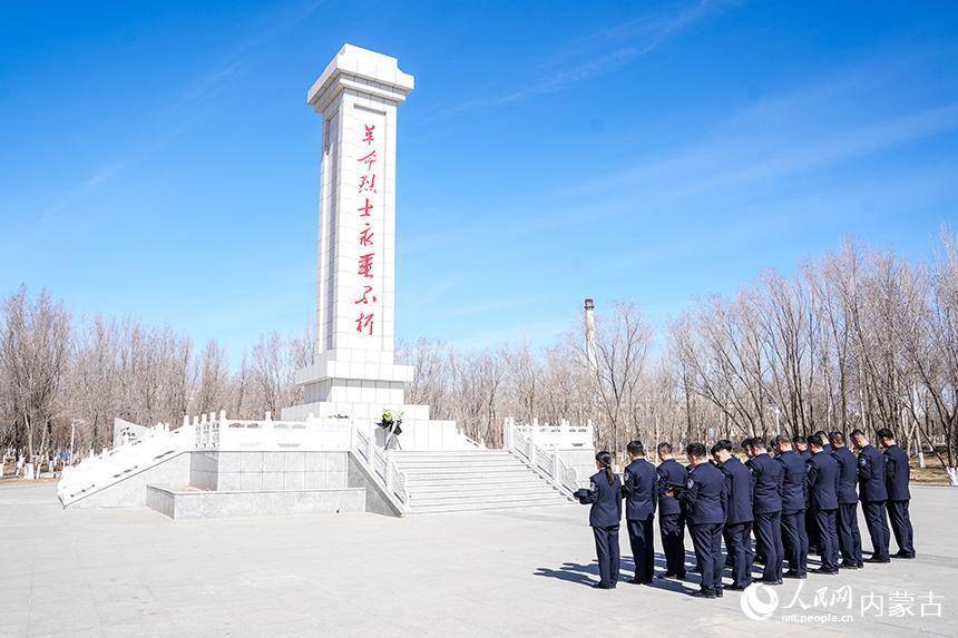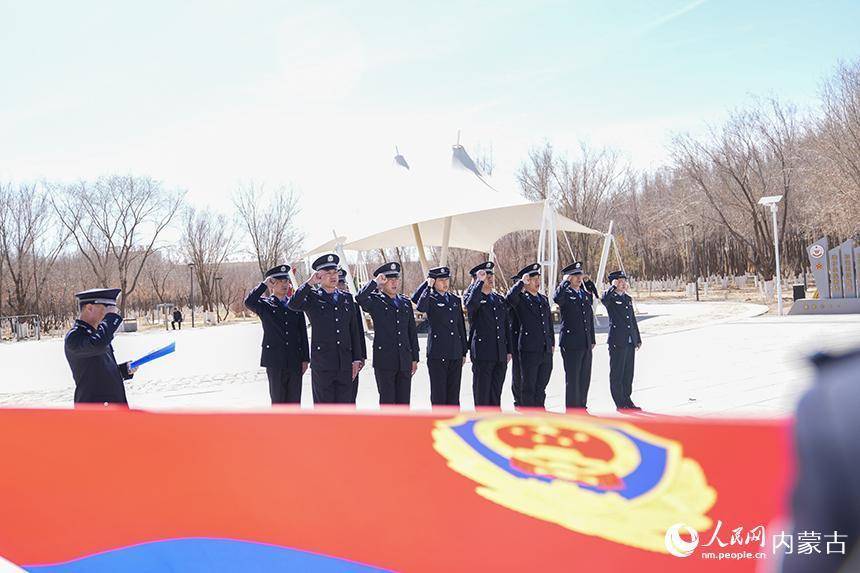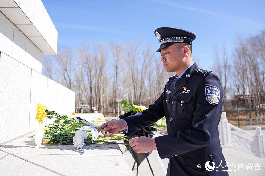 二连出入境边防检查站移民管理警察在革命烈士纪念碑前向英烈默哀。杨金烨摄松柏凝翠寄哀思,忠魂不朽励初心。4月2日,在清明节来临之际,内蒙古出入境边防检查总站二连出入境边防检查站组织民警前往驻地革命烈士纪念碑前,开展“致敬革命英烈、激发奋进力量”主题纪念活动。全体民警肃立默哀、敬献白花,面对鲜红警旗高举右拳,重温入警誓词,以铿锵誓言筑牢忠诚警魂,深切缅怀革命先烈的不朽功勋,寄托对英烈的深切追思,传承赓续红色血脉,汲取奋进前行力量。(杨金烨)
