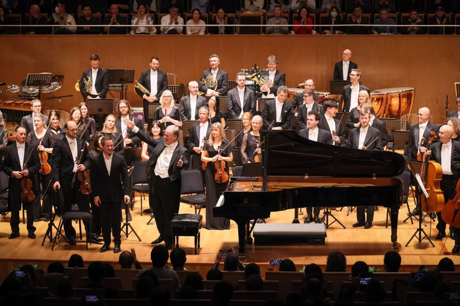 不过,与BBC录音专辑中的“典范”演绎相比,以炫亮玄幻的铜管撕开静默的起始音调,未达我的预期,甚至一度延续到了圣桑《F大调第五钢琴协奏曲“埃及”》(以下简称《埃及协奏曲》)的起音,我将它理解为一种在可控范围之内乐队的时差反应,与适应新场地空间的声学磨合期。请相信,虽然演出前会有短暂的实地排练,但空场与满座的对比,仍会在听觉与气场上产生微妙差异。因此,每一次现场都是独一无二的临响事件。毕竟,世界级乐团的标准配置中,就有非凡的“自驱动系统”与“自调节功能”:随着音响材料的渐次加入,各声部采用常规乐器的非常规音韵表达,多多少少让听众从中拾获了一种声音“香料”的独特体验,既陌生又刺激,既令人好奇又难以抗拒。作曲家似乎在以有意回避工业化量产的方式,回归农业化种植的自然生态方式来培育她的音乐“生物”,这种充满包容性的生态精神,被乐队充分地领会并表现出来——一种掩映在无序表象下真正的秩序,以至于安静的结束句被现场意外响起的一段曼妙二胡旋律“无缝衔接”,都毫无违和感。从指挥家鞠躬致谢的笑容中,我们看到了一种意外来袭仍不失优雅的淡定与从容,证明了BBC无论在现场还是录音里,都是该作品诠释史上不可否认的权威演绎。